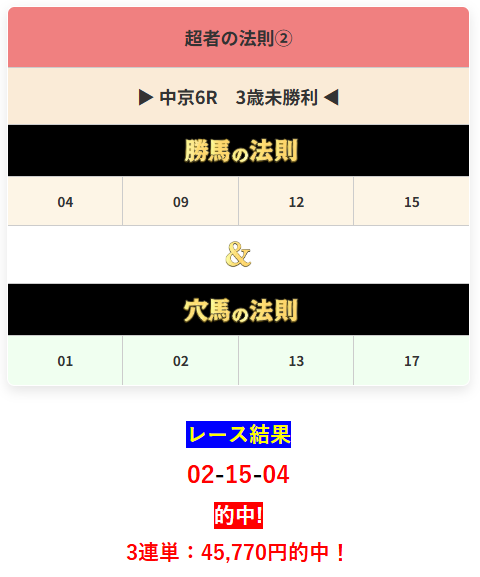| 新潟12R | 軸馬 | 04.09 | 相手馬 | 05.07.12.13 | 穴馬 | 02.03.06.08.14.15 | 結果 | 4-7-8 21,550円 3連単 的中!  |