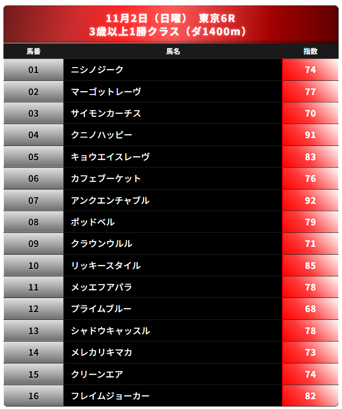 90以上=馬券内に絡んでくる可能性が極めて高い